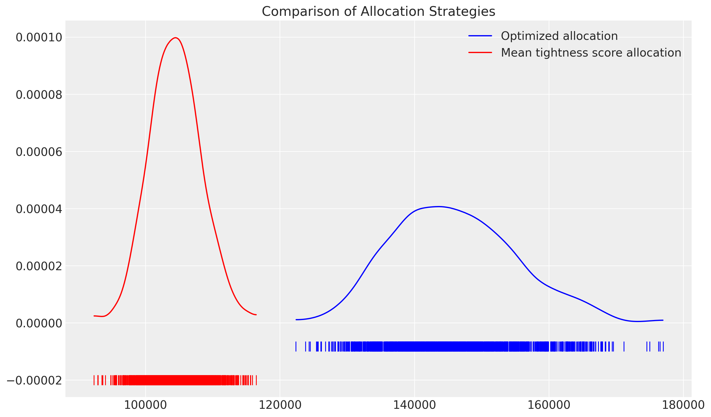 In this notebook, we have examined the methodology for assessing the risk associated with various budget allocations, utilizing distinct strategies. We have also demonstrated how to generate an optimal budget allocation that aligns with a specified risk tolerance criterion. Three separate risk assessment metrics were employed: the Mean Tightness Score (MTS), Value at Risk (VaR), and a custom criterion that integrates both the mean tightness score and the diversification ratio.