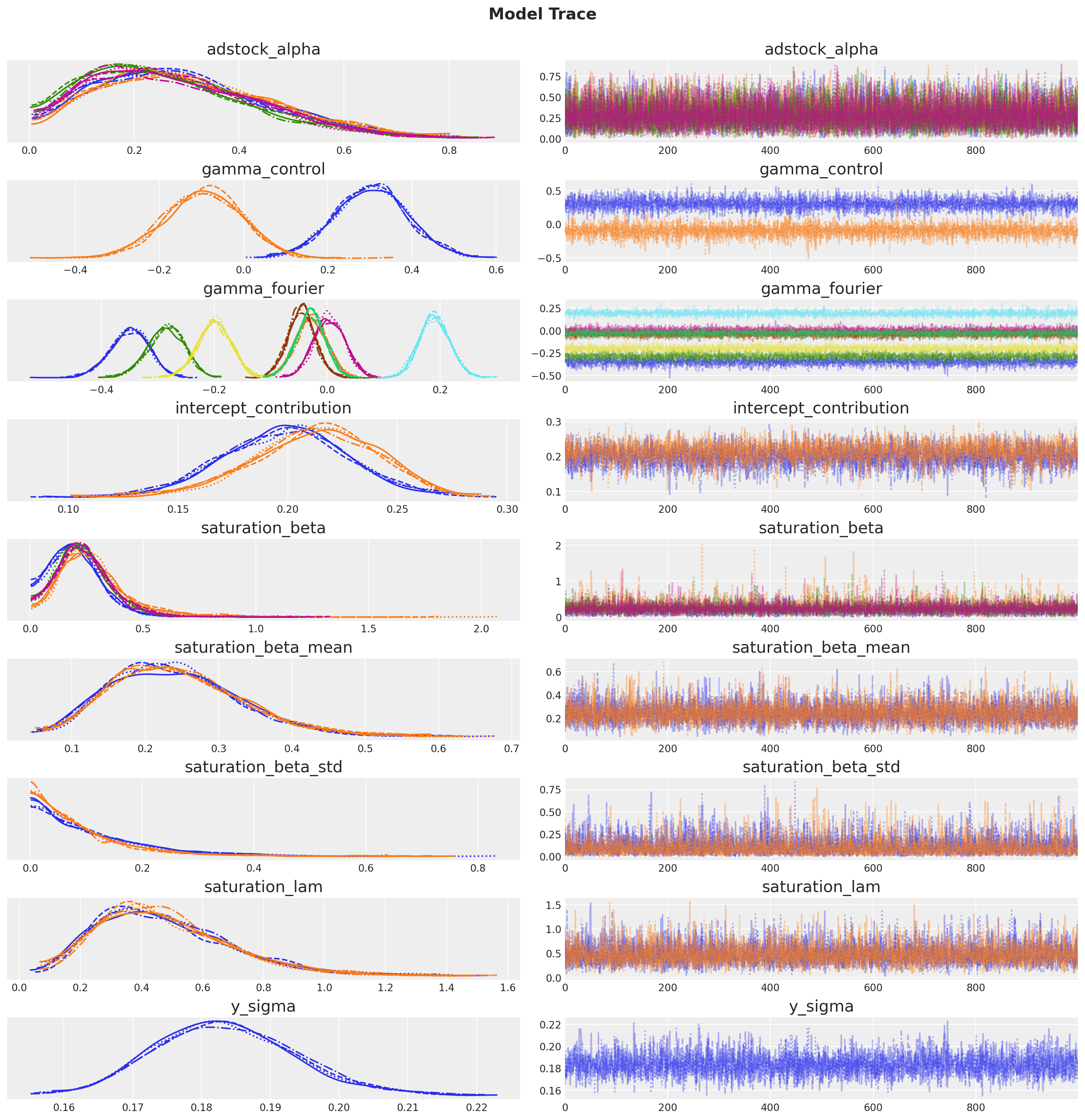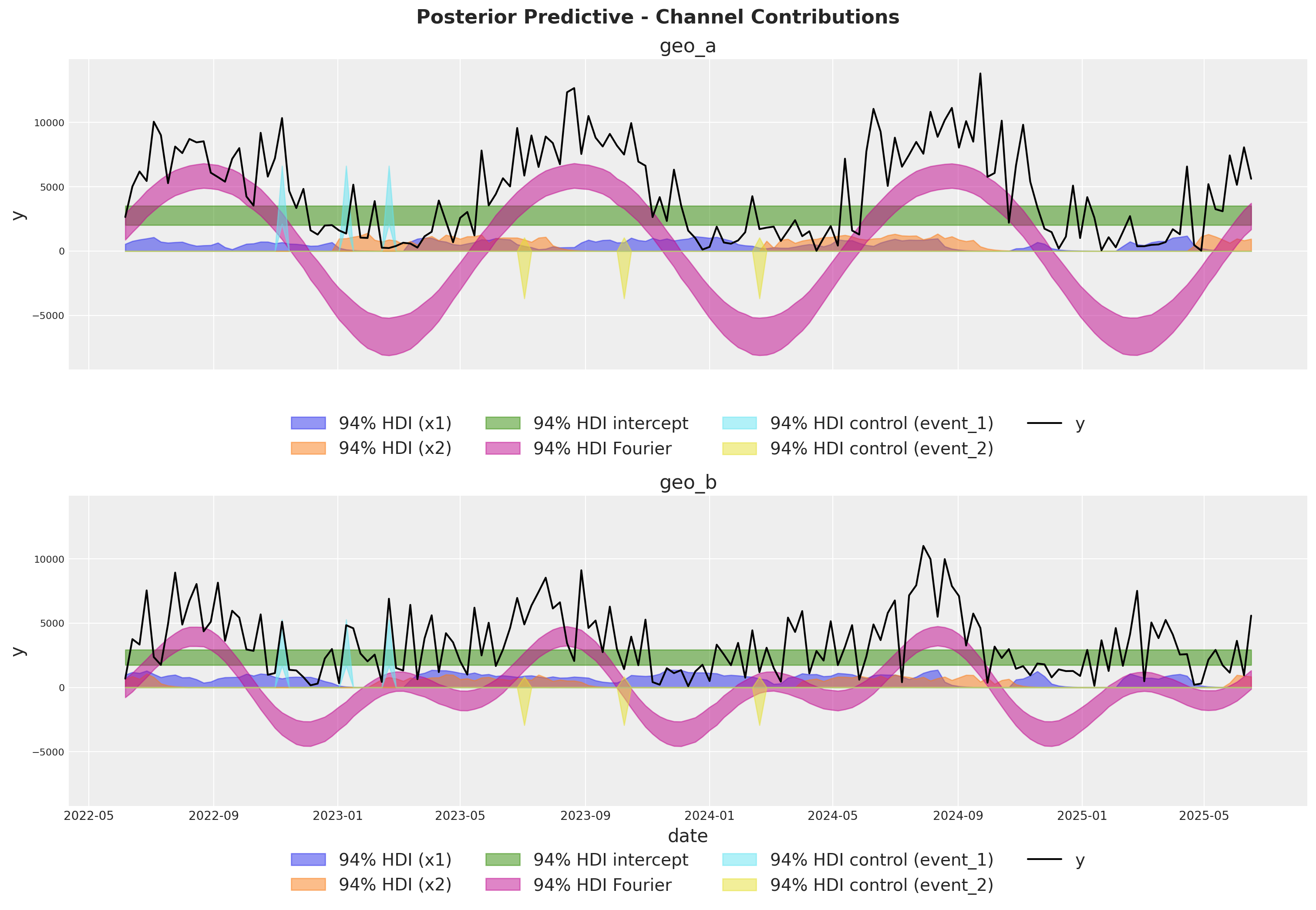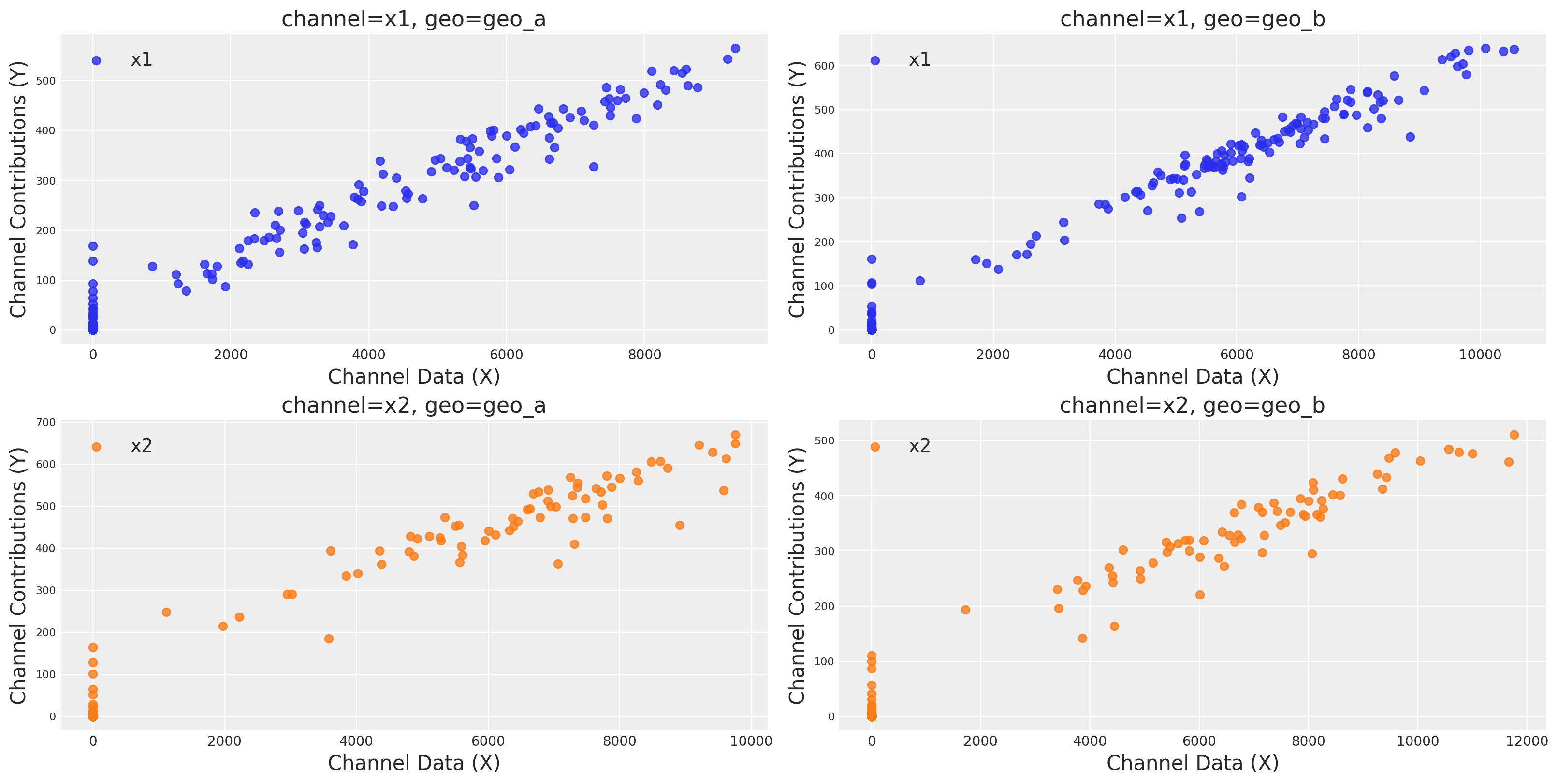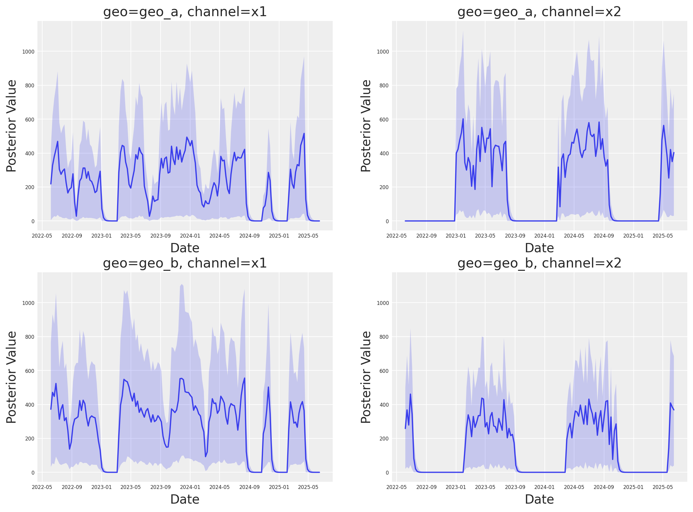 This notebook we’ll illustrate hierarchical modeling in MMM models. This can be controlled via the dims argument of Prior objects used in model_config. We’ll show you how to code each type of assumption you might make (we aren’t recommending it as a good model!).