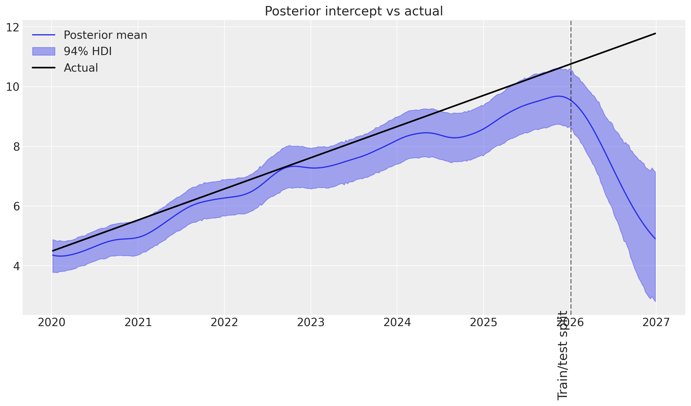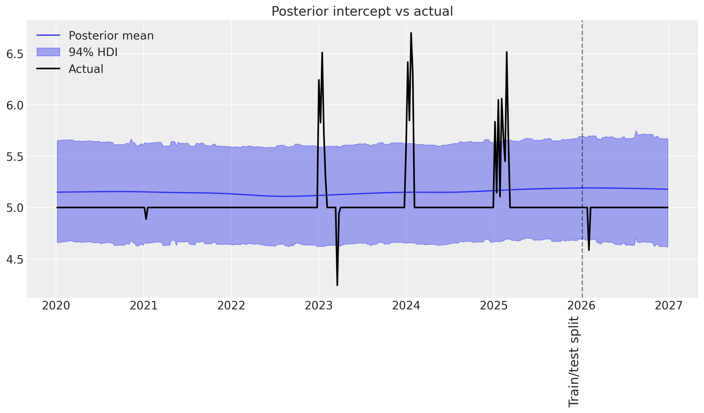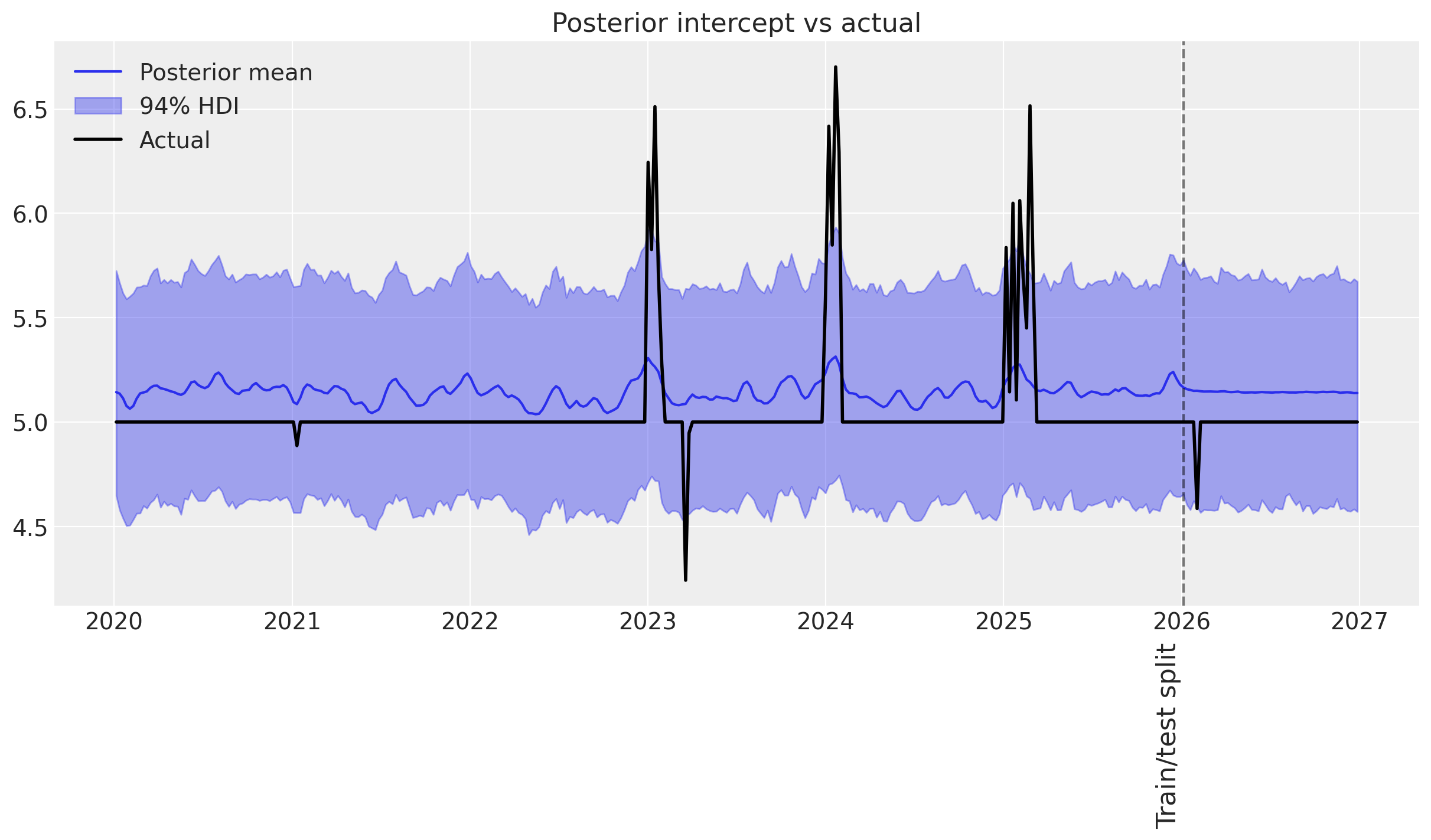 • 🤷‍♂️ Only the two major events are captured by the time-varying intercept.